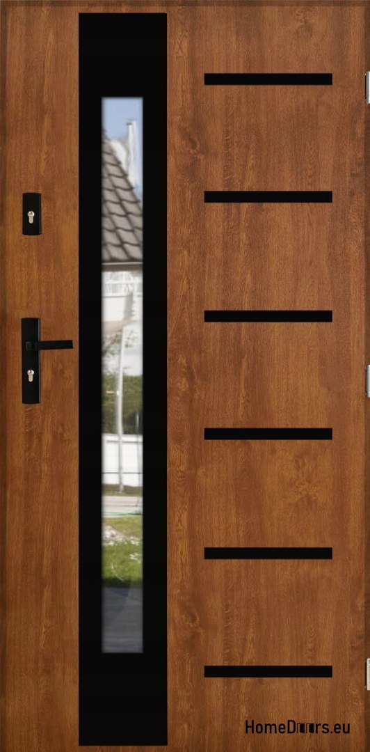 PORTA D'INGRESSO ESTERNA IN ACCIAIO T41, VETRATURA S36, TELAIO E APPLICAZIONI NERO, PRODOTTO IN ACCIAIO, GR. 72 millimetri