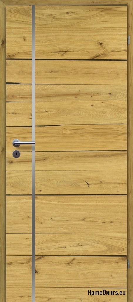 Drzwi o konstrukcji płytowej, oklejone naturalnym fornirem. Krawędzie drzwi zdobi naturalne drewno. Wypełnienie drzwi stanowi płyta wiórowa wielootworowa, wysoko prasowana. Drzwi są uszlachetnione podwójną warstwą oleju o podwyższonym parametrze odporności na ścieranie, przyjaznym dla zdrowia i środowiska.