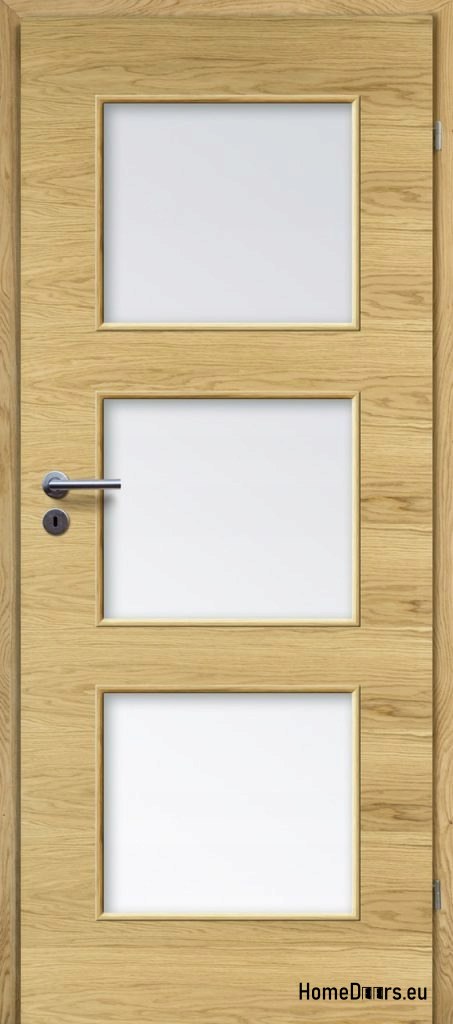 Drzwi o konstrukcji płytowej, oklejone naturalnym fornirem. Krawędzie drzwi zdobi naturalne drewno. Wypełnienie drzwi stanowi płyta wiórowa wielootworowa, wysoko prasowana. Drzwi są uszlachetnione podwójną warstwą oleju o podwyższonym parametrze odporności na ścieranie, przyjaznym dla zdrowia i środowiska.