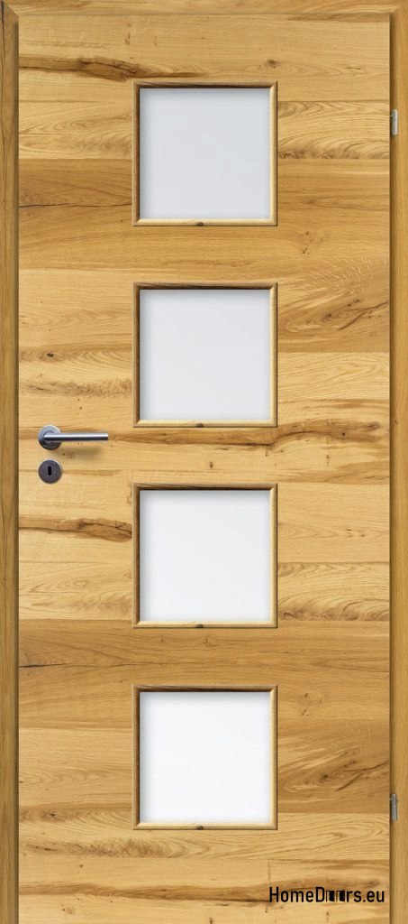 KONSTRUKCJA SKRZYDŁA: Drzwi o konstrukcji płytowej, oklejone naturalnym fornirem. Krawędzie drzwi zdobi naturalne drewno. Wypełnienie drzwi stanowi płyta wiórowa wielootworowa, wysoko prasowana. Drzwi są uszlachetnione podwójną warstwą oleju o podwyższonym parametrze odporności na ścieranie, przyjaznym dla zdrowia i środowiska.