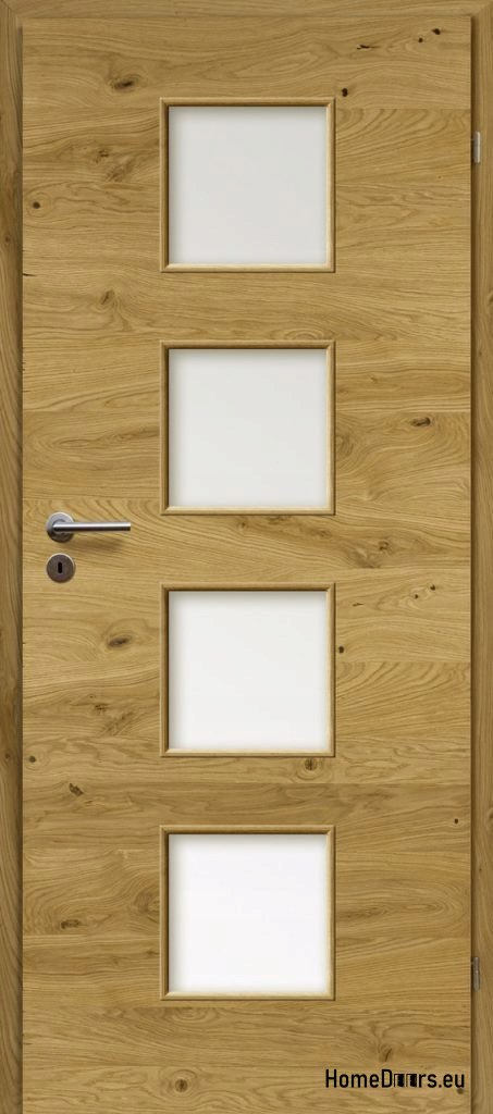Drzwi o konstrukcji płytowej, oklejone naturalnym fornirem. Krawędzie drzwi zdobi naturalne drewno. Wypełnienie drzwi stanowi płyta wiórowa wielootworowa, wysoko prasowana. Drzwi są uszlachetnione podwójną warstwą oleju o podwyższonym parametrze odporności na ścieranie, przyjaznym dla zdrowia i środowiska.
