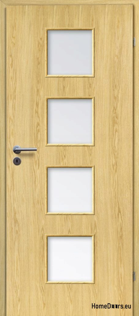 Drzwi o konstrukcji płytowej, oklejone naturalnym fornirem. Krawędzie drzwi zdobi naturalne drewno. Wypełnienie drzwi stanowi płyta wiórowa wielootworowa, wysoko prasowana. Drzwi są uszlachetnione podwójną warstwą oleju o podwyższonym parametrze odporności na ścieranie, przyjaznym dla zdrowia i środowiska.
