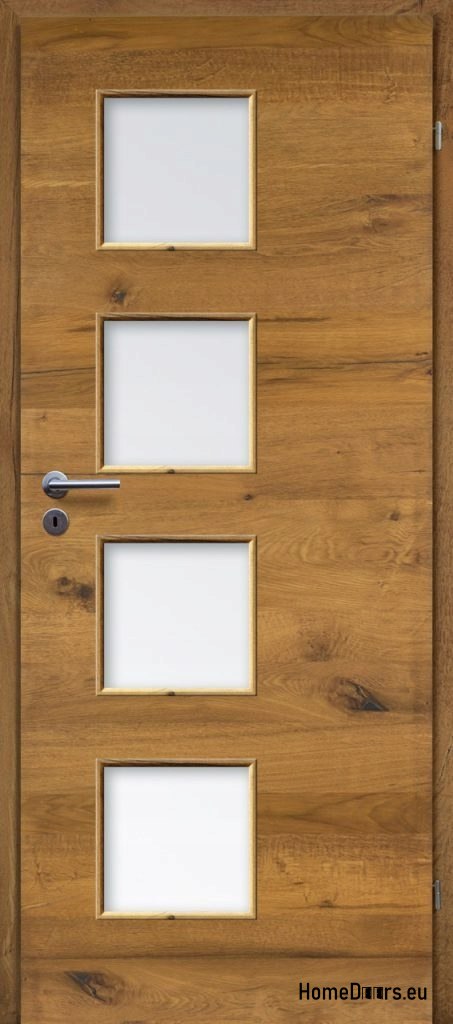 Drzwi o konstrukcji płytowej, oklejone naturalnym fornirem. Krawędzie drzwi zdobi naturalne drewno. Wypełnienie drzwi stanowi płyta wiórowa wielootworowa, wysoko prasowana. Drzwi są uszlachetnione podwójną warstwą oleju o podwyższonym parametrze odporności na ścieranie, przyjaznym dla zdrowia i środowiska.