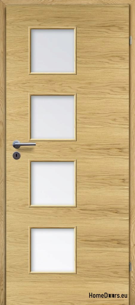Drzwi o konstrukcji płytowej, oklejone naturalnym fornirem. Krawędzie drzwi zdobi naturalne drewno. Wypełnienie drzwi stanowi płyta wiórowa wielootworowa, wysoko prasowana. Drzwi są uszlachetnione podwójną warstwą oleju o podwyższonym parametrze odporności na ścieranie, przyjaznym dla zdrowia i środowiska.