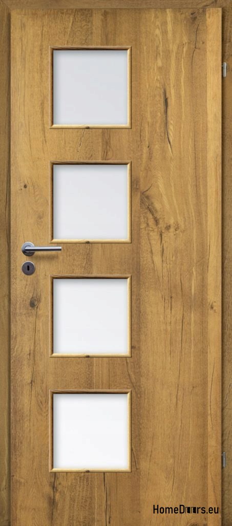 Drzwi o konstrukcji płytowej, oklejone naturalnym fornirem. Krawędzie drzwi zdobi naturalne drewno. Wypełnienie drzwi stanowi płyta wiórowa wielootworowa, wysoko prasowana. Drzwi są uszlachetnione podwójną warstwą oleju o podwyższonym parametrze odporności na ścieranie, przyjaznym dla zdrowia i środowiska.