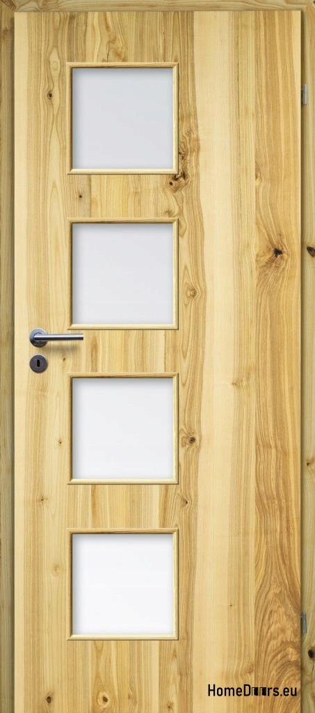 Drzwi o konstrukcji płytowej, oklejone naturalnym fornirem. Krawędzie drzwi zdobi naturalne drewno. Wypełnienie drzwi stanowi płyta wiórowa wielootworowa, wysoko prasowana. Drzwi są uszlachetnione podwójną warstwą oleju o podwyższonym parametrze odporności na ścieranie, przyjaznym dla zdrowia i środowiska.