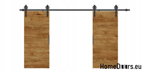 W zestawie otrzymujesz kompletne drzwi przesuwne 110 cm – skrzydło w kolorze Dębu Lefkas + czarny system przesuwny LOFT 04 + uchwyt i prowadniki.