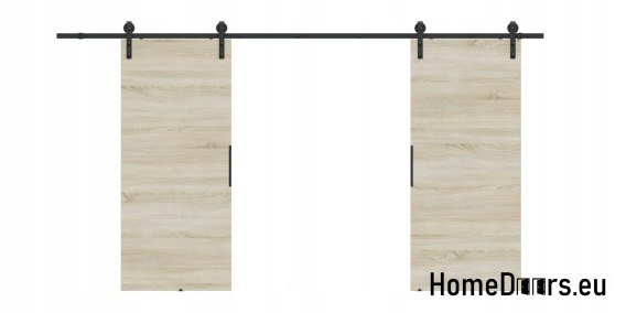 W zestawie otrzymujesz kompletne drzwi przesuwne 130 cm – skrzydło w kolorze Dębu Sonoma + czarny system przesuwny LOFT 01 + uchwyt i prowadniki.