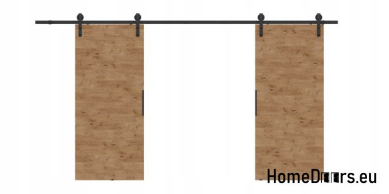 W zestawie otrzymujesz kompletne drzwi przesuwne 140 cm – skrzydło w kolorze Dębu Lancelot + czarny system przesuwny LOFT 01 + uchwyt i prowadniki.