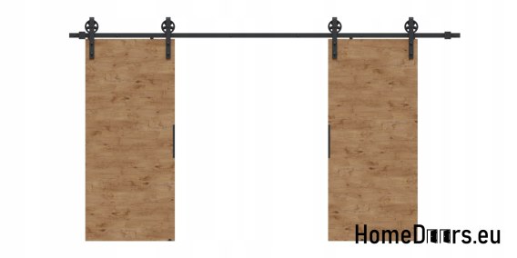 W zestawie otrzymujesz kompletne drzwi przesuwne 140 cm – skrzydło w kolorze Dębu Lancelot + czarny system przesuwny LOFT 04 + uchwyt i prowadniki.