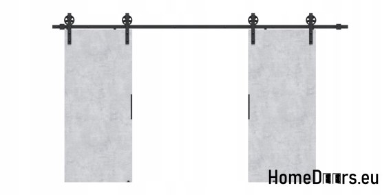 W zestawie otrzymujesz kompletne drzwi przesuwne 148 cm – skrzydło w kolorze beton szary + czarny system przesuwny LOFT 04 + uchwyt i prowadniki.