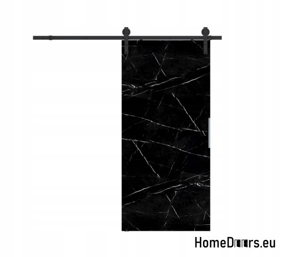 Il set include una porta scorrevole completa da 95 cm – foglia in Marmo Nero + sistema scorrevole LOFT P-01 nero + maniglia e catene.