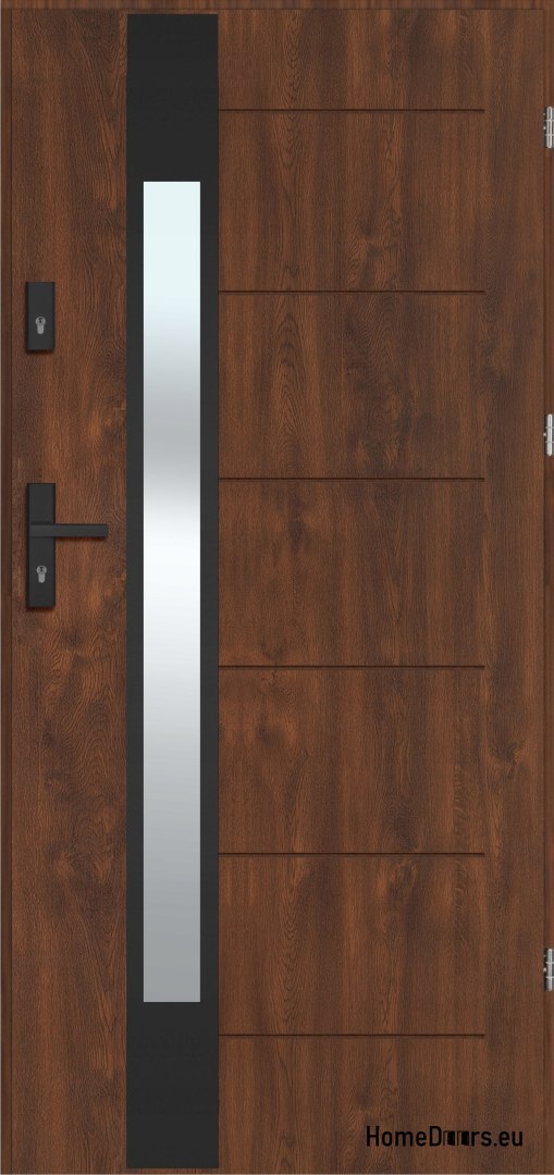 Porta da esterno LAUSANNE NERO con specchio, SPESSORE caldo 72mm, OFF-the-SHELF, 90 P